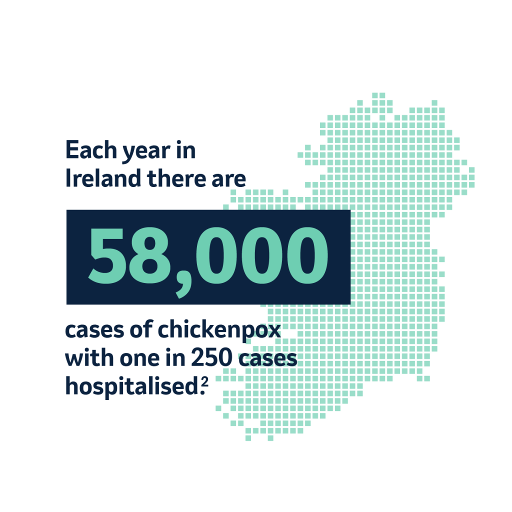 Chickenpox is a highly contagious viral infection caused by the varicella-zoster virus. In Ireland, there are approximately 58,000 cases annually, primarily affecting children under 10 years old, though people of any age can be infected.1,2